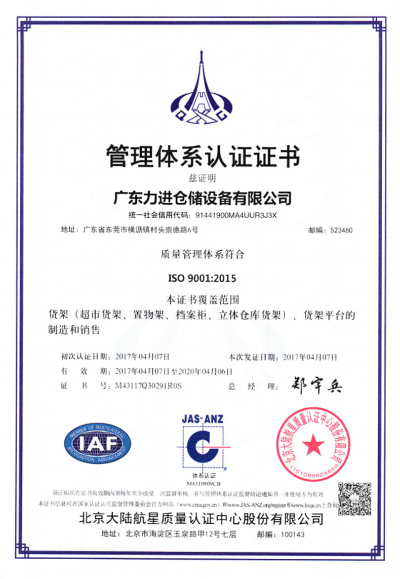 • “十一”假期已結束,力進貨架正常接單! 2019-10-04